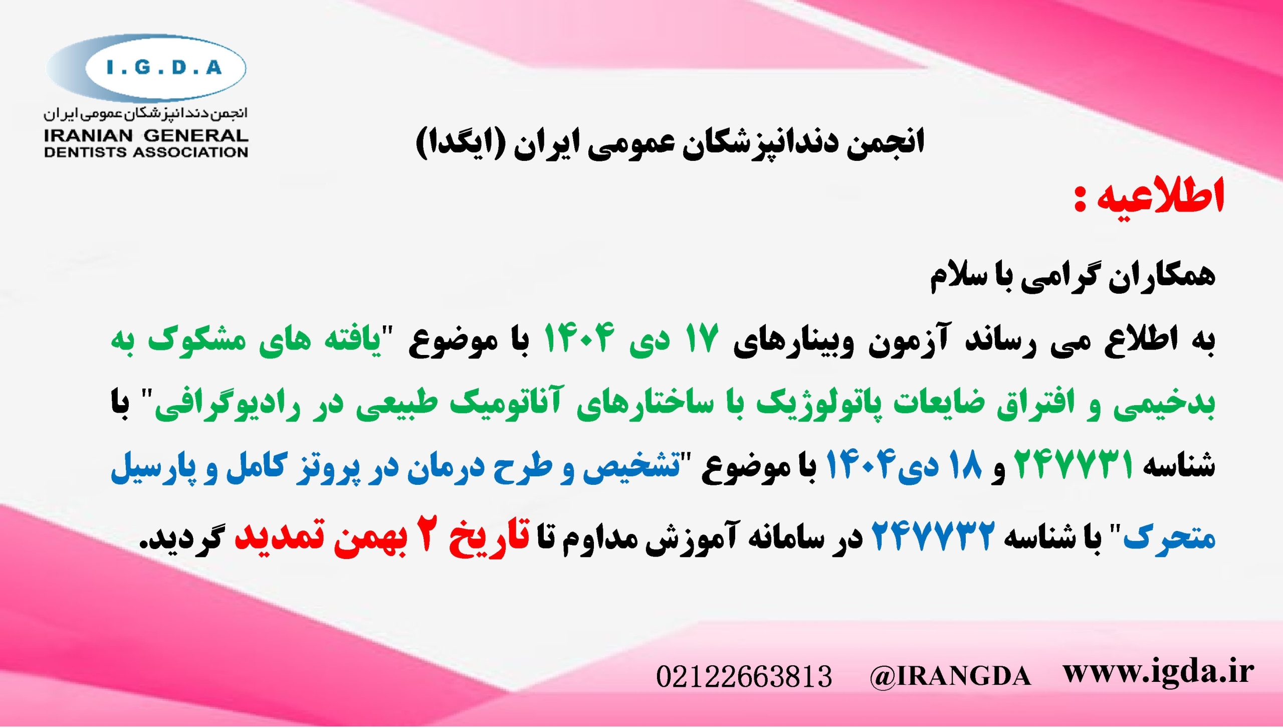اطلاعیه آزمون وبینارها